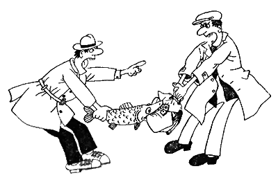 Если рыба принадлежит ему, вмешался один из пассажиров, прикрыв щуку портфелем, он сможет сказать, сколько у нее плавников.