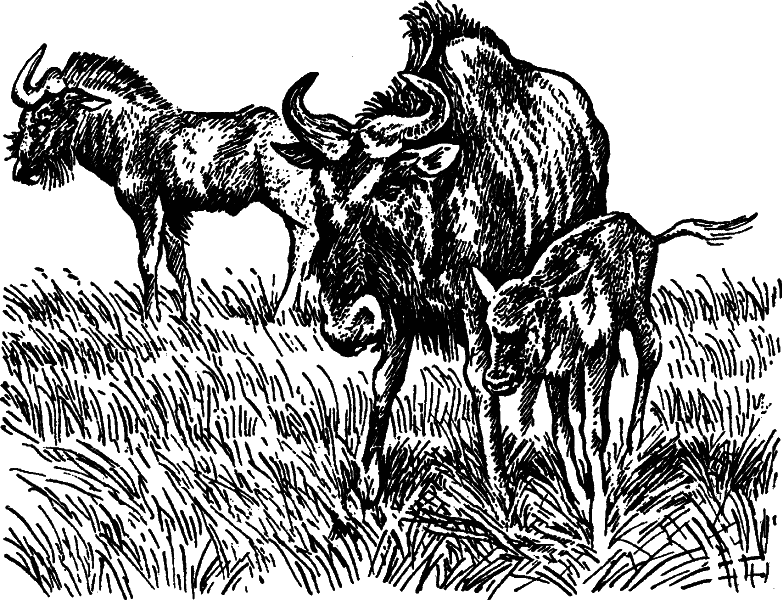 Обоих носорогов я нашел без труда, потому что сидящие на их спинах белоснежные египетские цапли видны еще издалека. А вот львов что-то нигде не видно; правда, лев может сделаться невидимым, даже если трава достигает всего 30 сантиметров высоты. Однако по всему поведению носорога-самца я вижу, что хищники где-то рядом с ним. Он низко нагибает голову и решительно направляется куда-то в сторону; действительно, из травы поднимается большой лев с роскошной гривой и уходит прочь. Но, пройдя 30 метров, он вновь ложится. Однако и носорог не отстает. Приходится «царю зверей» убираться подобру-поздорову по-видимому, он не самый могущественный в этом царстве!