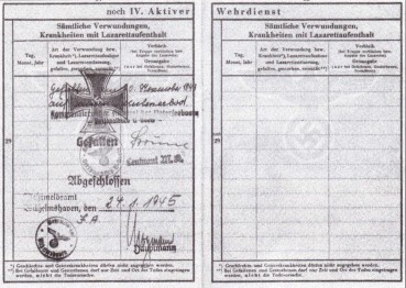 Фото: Wehrpass подводника. В военном билете сделана запись о гибели его обладателя в бою «Gefalien am 10 November 1943 aufeinem Unterseeboot».