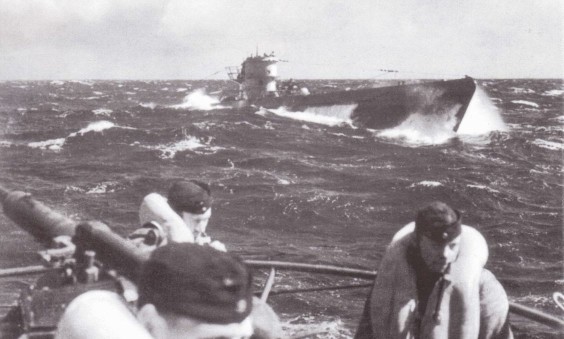 Фото: U-боты в надводном положении выполняют переход бурными водами Бискайского залива На переходах в Бискайском затее множество германских лодок потопила авиация союзников. В конечном итоге Дениц был вынужден отдать приказ форсировать Бискай только в подводном положении. На переходе у зениток подводных лодок всегда дежурили расчеты.