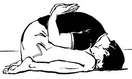 Исходное положение. Сесть, подтянуть обе ноги коленями к туловищу. Обхватить руками, пятки к ягодицам, ступни вместе (обхватить левой рукой запястье правой руки для мужчин, для женщин наоборот).