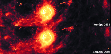 Как порой бывает в науке, открытие было сделано случайно. Между сеансами наблюдений часто приходится перенастраивать оборудование и проводить соответствующие тесты. В ходе одного такого тестирования в поле зрения телескопа Spitzer попало странное явление. Снимки показывали, что межзвездная пыль в туманности движется со скоростью света. Астрономы, конечно, не поверили в чудо и, проведя повторные исследования, зафиксировали так называемое инфракрасное эхо, вызванное разогревом газа от вспышек на поверхности звезды. Тепловое излучение распространялось со скоростью света, нагревая вещество туманности, из-за чего казалось, что с огромной скоростью движутся сами газ и пыль. Подобные явления в общем-то не новы, а неожиданностью стало то, что их заметили именно в Кассиопее А. От мертвой нейтронной звезды никто не ждал никаких вспышек. Теперь известно, что по крайней мере одна вспышка случилась полвека назад, а возможно, в прошлом были и другие. Исходя из этого прародительницу туманности следует отнести, скорее, к магнетарам, сверхсильное магнитное поле которых время от времени вызывает на поверхности звезды интенсивные всплески рентгеновского и гамма-излучений (см. «КТ» #580).