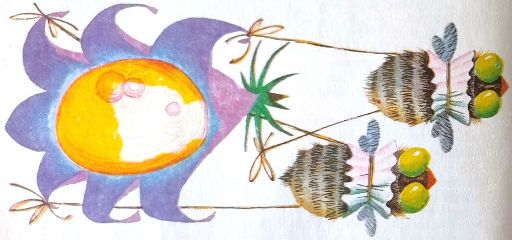 Я наклонился и заметил крохотную повозку, в которую впряглись четыре трутня. На повозке было несколько цветков лилии, наполненных диким медом.