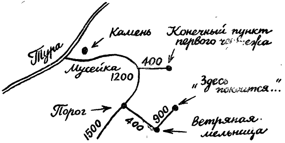 По прямой, перпендикулярной Мусейке, прошли далеко к руслу, но тайга скрыла от них свои сокровища. С удивлением обнаружили теперь, что цифры первого чертежа, внешне соответствующие второму, на самом деле не совпадали по конечным своим точкам, так как вблизи тысячи двухсот саженей от устья Мусейка круто поворачивала