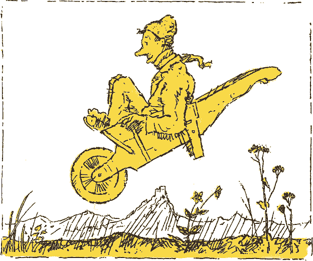 Знал Кафтанчик, что на этот раз тачка не поможет. Пустился пешочком через горы, через долы в тридевятое царство, тридесятое государство. Идет по горам, видит человек вокруг дерева бегает, остановиться не может. Давно видать бегает. Много лет.