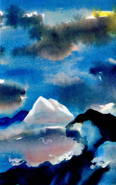 Спустилось солнце за темную гору, поднялись птицы в золотое небо, разлетелись по всей тайге, но долго слышалась их радостная песня.