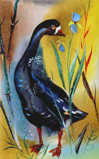 Проснулась гусыня, заплакала и сообщила своему вожаку о пропаже пера.