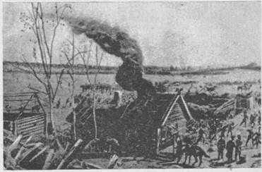 сражения. Панорама захватывала зрителя правдивостью и грандиозностью изображения. Напряжение боя умело подчеркивалось ярким солнечным освещением, блеском орудий и штыков, стремительностью движения всадников и пехотинцев.