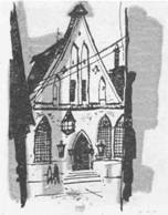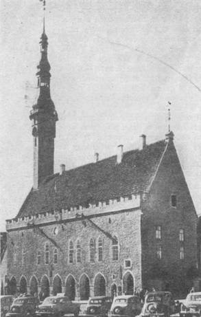 Таллинская ратуша - одна из самых монументальных готических ратуш в истории зодчества всей Северной Европы. Сооружалась ратуша в 1371 - 1374 и 1401 - 1404 годах. Шпиль в стиле барокко воздвигнут в 1627 - 1628 годах. В дни Великой Отечественной войны шпиль сгорел, но в настоящее время восстановлен в прежнем виде. С 1530 года вершину шли-ля украшает флюгер в виде фигуры городского воина - «Старого Тоома-са». Тот «Старый Тоомае», который находится на шпиле сейчас, - копия, сделанная в 1952 году; оригинал хранится в филиале Таллинского городского музея, помещающемся здесь же в ратуше.