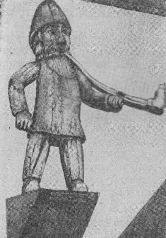 Такие «охлупни», венчающие крыши северных изб, выполняли определенную конструктивную задачу. Своей тяжестью длинный ствол лиственницы пригнетал тес кровли, а корневище его, нависающее «ад высоким фасадом постройки, плотник превращал в голову конька или утицы.