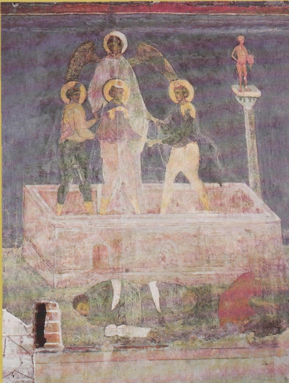 Три отрока в пещи огненной. Роспись жертвенника. Конец XV - начало XVI в. Деталь