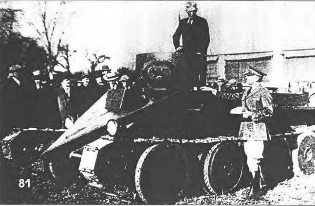 Безбашенный танк М.1932, во время очередного показа. Крайний справа Дж. У. Кристи.