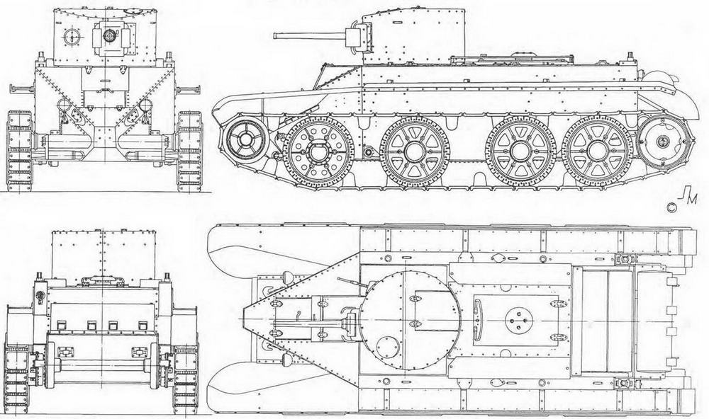 Танк БТ-2 с пушечно-пулеметным вооружением.