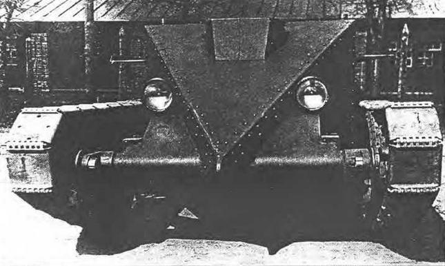 Танк «Кристи». Вид спереди. Обратите внимание на отсутствие смотровых щелей в люке механика-водителя.