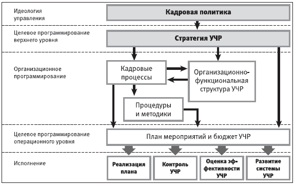 управление человеческими ресурсами», который означал управление факторами, влияющими на реализацию сотрудниками стратегических задач компании (Ч. Фомбран и др.). Этот подход соединяет стратегическое управление компанией и управление человеческими ресурсами, поднимая тем самым кадровую службу с уровня обеспечивающего подразделения до уровня топ-менеджмента. Такая постановка дел требует не столько построения кадровой службы как отдельного подразделения, сколько разработки системы управления человеческими ресурсами, основанного на системных принципах обеспечения иерархической взаимосвязанности управляющих элементов, целенаправленного изменения элементов и достижения сверхсуммативности, синергетичности (о системном подходе см. элемент 1.2).