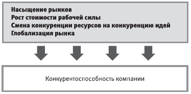 смена конкуренции ресурсов конкуренцией идей (материальные ресурсы находятся на рынке в свободном доступе, существует дефицит бизнес-идей, с помощью которых можно сгенерировать добавленную стоимость и обеспечить конкурентное преимущество);