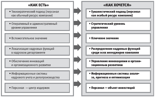 Мировая практика демонстрирует существенное смещение различных аспектов управления персоналом (рис. 1.4.1). Можно выделить следующие направления изменений:
