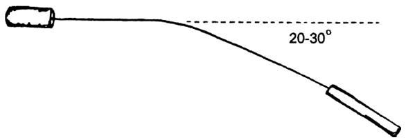 В. Самая простая, но вполне практичная форма рукоятки _ это, как вы уже видели, просто другой конец проволоки. Возьмите проволоку так, чтобы снизу к ней прилегали богатые нервными окончаниями кончики четырех длинных пальцев, а сверху обладающий тем же свойством кончик большого пальца (как показано на рисунке на с. 33), притом совершенно спокойно и, главное, свободно