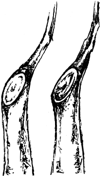 Еще важнее правильно определить место среза. У основания ветвей, как правило, имеется кольцевой наплыв, по верхней части которого и следует делать срез. Если срезать ветку выше, остается пенек, который практически всегда загнивает, и на этом месте может образоваться дупло. Если, наоборот, срез сделан слишком близко к стволу, рана получается очень большой и плохо зарастает.