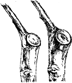 При супротивном или мутовчатом расположении почек срез делают прямым над ними настолько близко к почкам, чтобы только не повредить их.
