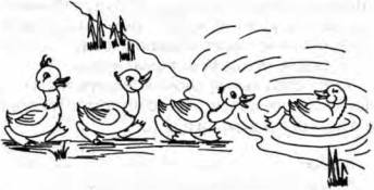 Вышла как-то курица со своим выводком за ограду, добралась до пруда. Увидали утята воду, все к ней побежали, один за другим вплавь пустились. Курица, бедная, по берегу бегает, кричит, утят к себе зовёт, боится, что они утонут.