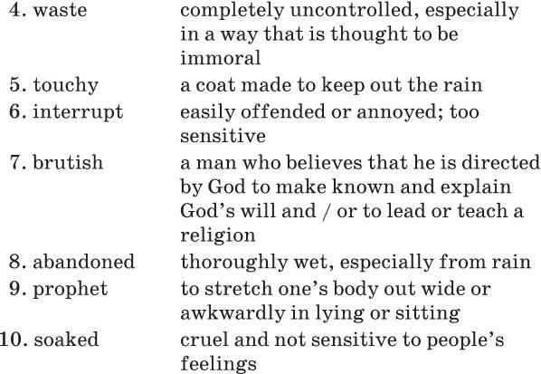 fortnight, interrupt, waste, instead of, weather forecast, occasional, beforehand, meanwhile, wonder, pay attention to, circumstance, afterwards, rumour, on the contrary, beg, convinced, suspicious, prove, grocer, starve.