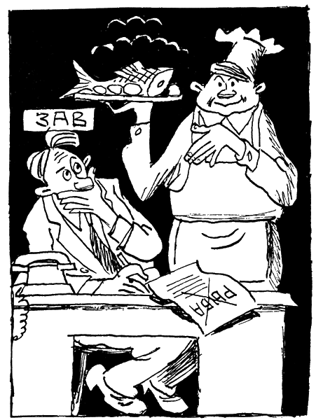 «В один, как говорится, прекрасный день из нашего учрежденческого буфета исчезли рыбные блюда. Буфетчица объяснила: так приказал начальник управления. Нам непонятно, имеет ли он на это право» (Из письма в редакцию.)