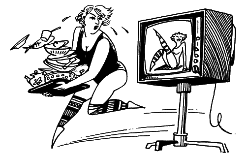 Пришла домой. Выгнала всех своих домашних мужа с детьми в кино на вечерний сеанс, свекровь к соседке в домино играть, а сама сняла фартук, выключила плиту и включила телевизор.