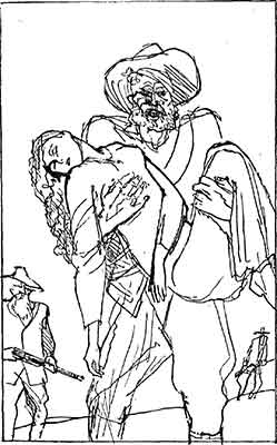 сделал шаг, второй, третий Он шел на позицию англичан. Он шел, держа мертвую жену на руках.