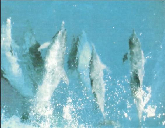 Как раз в ту минуту, когда мы входим в воды залива Сан-Хосе, появляются дельфины еще одного вида и, словно нарочно, чтобы поприветствовать нас, устраивают великолепный акробатический спектакль. К нашему великому удовольствию, они и прыгают назад через спину, и кувыркаются, и делают сальто над волнами. Темный дельфин (по-английски dusky dolphin, на языке науки Lagenorhynchus obscurus) настоящий весельчак, так что в этом названии отражен вовсе не его нрав, а всего-навсего окраска . Благодаря своим исключительным способностям к вольным упражнениям темный дельфин считается в океанариуме лучшим артистом после бутылконосого дельфина. Сейчас, кроме тех акробатических упражнений, которые я уже назвал, он развлекает нас резкими разворотами, разгоном торможением, самыми разными пируэтами в воздухе и в воде и катанием на носовой волне «Калипсо».