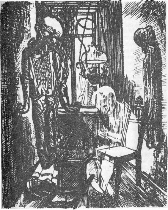 Рис . 3. Отто Дикс. «Самоубийца», 1922 г. Выполненный в экспрессионистской манере карандашный рисунок немецкого художника Отто Дикса показывает повесившегося с высунутым языком и выпученными глазами. На стуле сидит дух самоубийцы и читает газету