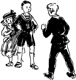 Пошли отсюда, грустно сказал Митя и собирался уже свернуть на дорогу, но неожиданно за оградой из-за кустов выбежал пухлый розовощекий мальчишка в матроске. Следом за ним бежала красивая девочка с пышными волосами. Увидев Митю и Ивашку, дети остановились и стали о чем-то шептаться. Потом мальчик подошел к ограде и поманил Митю.
