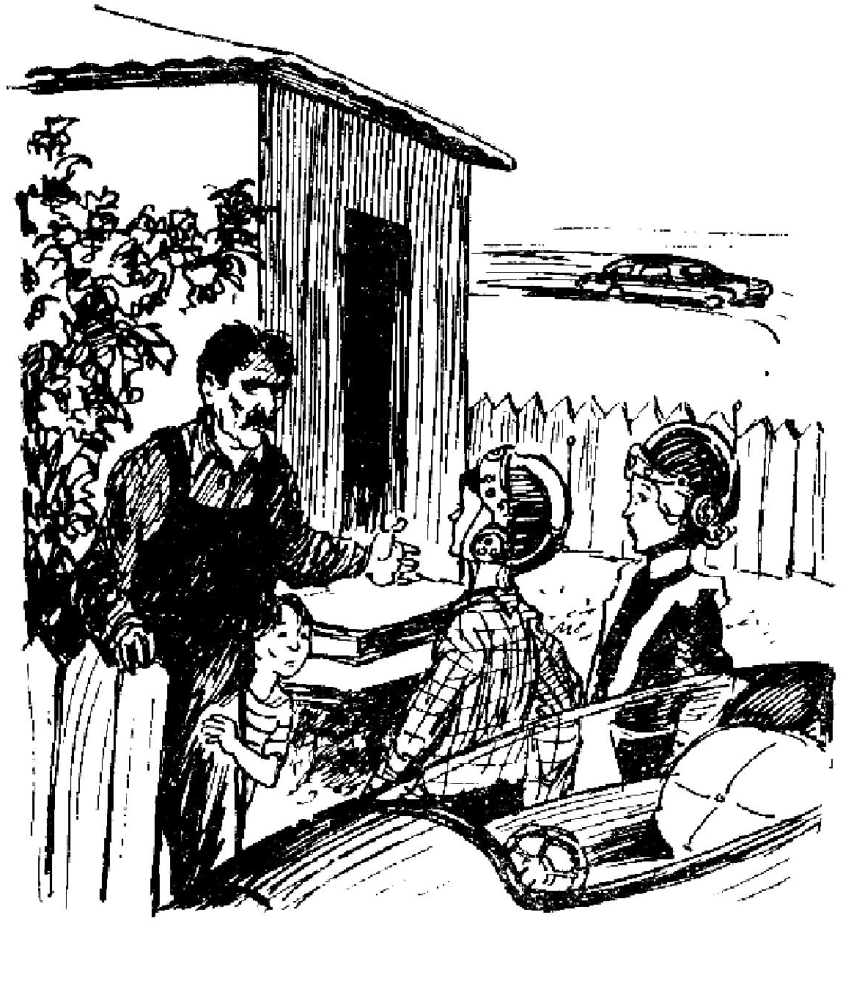 Навстречу им выбежали шестеро детей, от четырех до четырнадцати лет. Они забыли обо всем, увидев необычную машину. Подошли и родители - усталая худая женщина и сутулый человек лет сорока пяти. Его длинные сильные руки болтались как-то беспомощно, из-под густых бровей испуганно смотрели глаза, мягкие, добрые, они не соответствовали его мощной фигуре. Хозяева смотрели на приезжих равнодушно, словно часто видели таких путешественников.