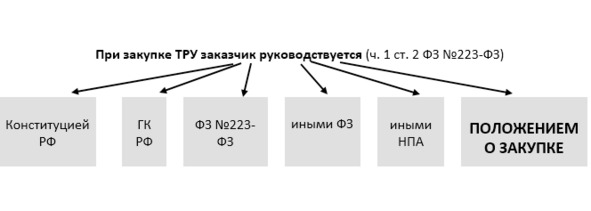 Положение о закупке (ч. 2 ст. 2 ФЗ 223-ФЗ) документ, который регламентирует закупочную деятельность заказчика и должен содержать:
