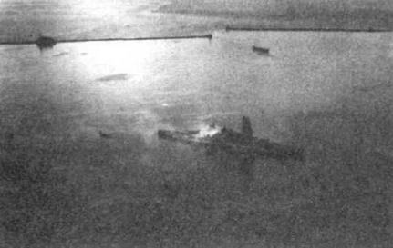 Первая из бомб, попавшая в корабль, взорвалась на верхней палубе, при этом были разрушены воздухопроводы, ведущие