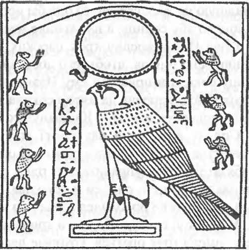 Павианы приветствуют солнечного бога, изображенного в виде сокола.