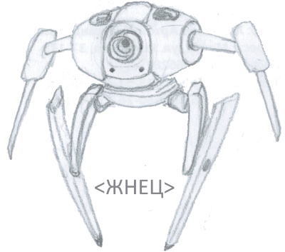 «Жнецы» были 2.5-метровыми 2-тонными, крайне опасными и чрезвычайно эффективными дронами особенно против пехоты и легких слабо бронированных мишеней. Таковыми их делали термо-ударные быстро вращающиеся лезвия на плечах и вместо ног, которыми они могли срезать мишени прямо в прыжке.