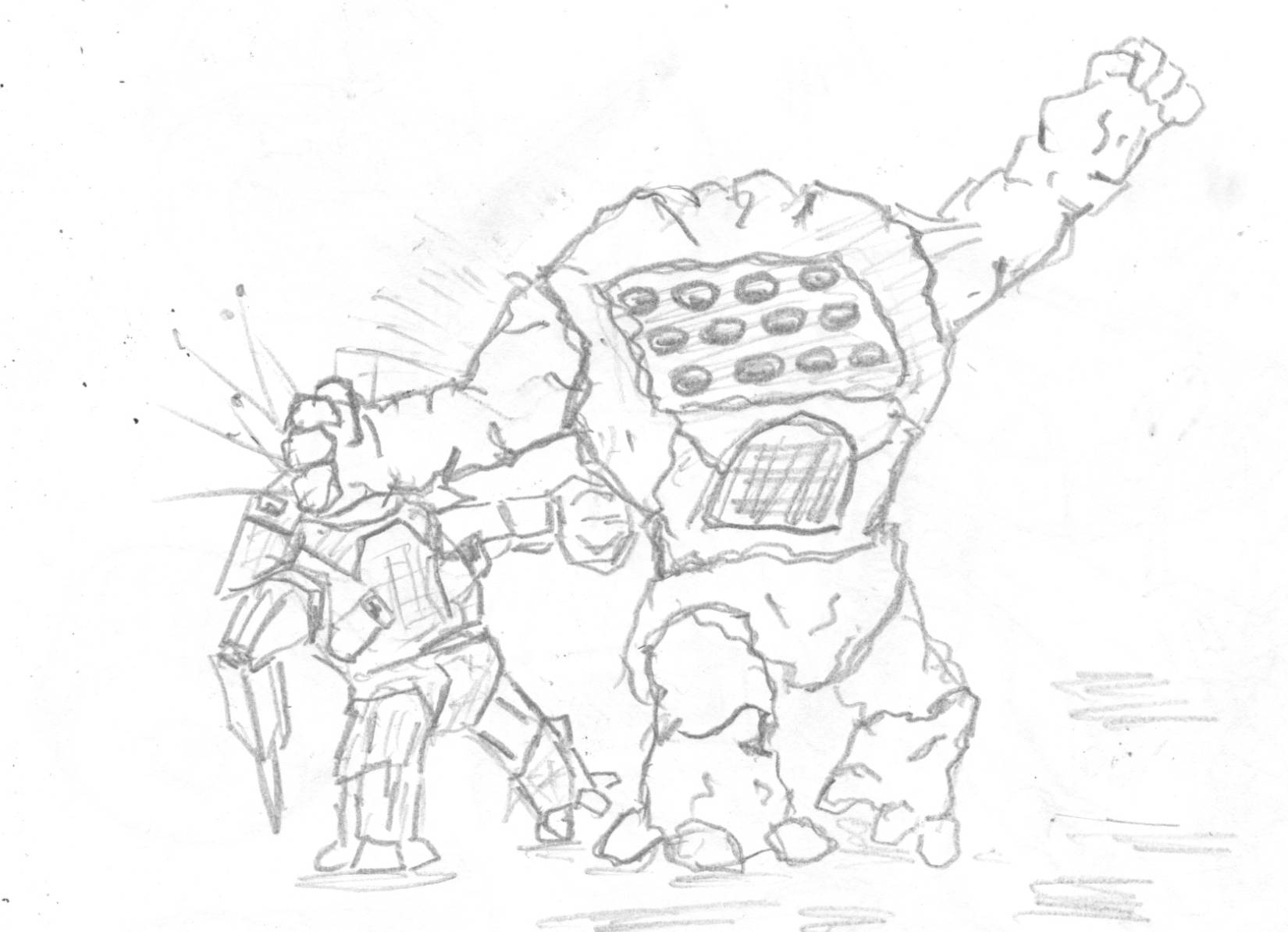 На последней фразе громоподобный раскат прокатился меж холмов. Тяжелое орудие «Горбуна» выплюнуло свой смертоносный «подарок». Брод кожей внутри преторианского доспеха ощутил дрожь, которая дошла до него даже через толщу брони. Тяжелый роторный снаряд вонзился в ничего не подозревавшего «Мимоса» и разорвал его на куски. Ошметки торса, конечности, броне-пластины, все полетело в разные стороны. Брод был уже в прыжке, когда это произошло. За ним следовала свита в виде единственного «Гоблина». Где-то внизу в торце скопившихся в беспорядке шаттлов и метущихся среди них людей показался «Стоунбэк», который к этому времени как раз успел получить ракетную подачу откуда-то из колонны. Вот только то, что окончилось печально для «Циклопа» почти не навредило ему. ИИ «Гладиатора» засек выстрел парной роторки, который убрал с неба «Канзату» технов. «Ну, значит и я в Дункане тогда не ошибся!». «Гоблин» атаковал «Стоунбэка» первым, опустив свою большую термо-ударную булаву прямо на широкую грубую спину робота. Невероятный по красоте и феерии каскад разноцветных искр разлетелся во все стороны. «Стоунбэк» будто немного просел и осунулся от такого внезапного удара. «Гоблин» же на этом не остановился и ударил термо-клинком тому в бок. Раскаленное яркое лезвие зашло в тело тяжелой машины где-то на половину. Броду даже показалось, что мелкий по сравнению с тушей «Стоунбэка» «Гоблин» и без него сделает свое дело. Он ошибся.
