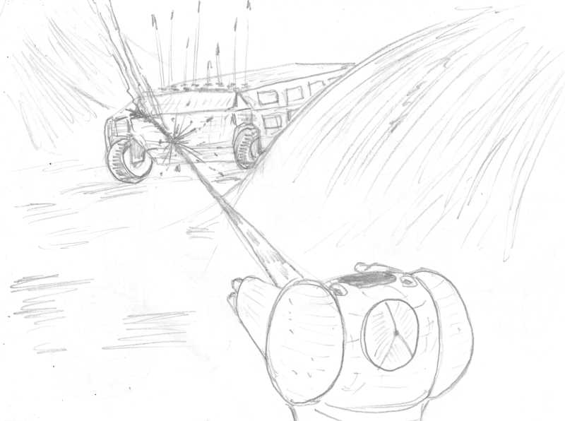 «Байпа» перемахнул через гребень оврага, вытянул голову на максимум и с расстояния почти в 300 метров полоснул импульсным тяжелым излучателем. Лицевая часть «Катафалка» была скрыта для Тулулы за склоном холма, так что ей оставалось работать по корме машины, которая наоборот вылезла из-за укрытия. Но в данном случае это было даже к лучшему.