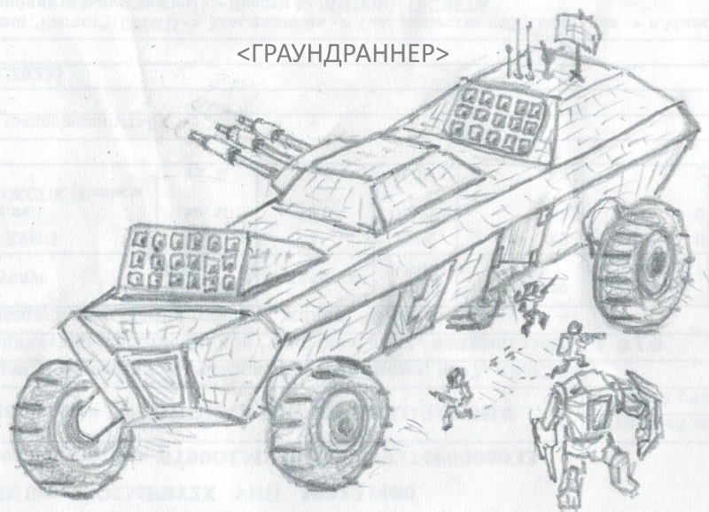Подземный тоннель вел напрямую к большому ангару, куда дроны-погрузчики уже выгрузили амуницию и боеприпасы, доставленные колонной мирных. Там Тулулу уже ждала Брода. Остальные тоже были там, но не все. Брод, выскочив в просторный бункер, быстро осмотрелся по сторонам. Прямо по центру стояла большая тяжелая оружейная система класса «Граундраннер» в окружении нескольких машин самих «реакционеров». Брод насчитал 5 роботов. Два были легкие «Ганапы», еще два «Гермесы» и, видимо, трофейный «Охотник». Тут же в стороне стоял и «Байпа», и «Горбун», и «Разведчик» и даже квадробот Юмолая. Находились тут и другие 4-колесные боевые машины. В отдельной секции были свалены трофеи и разбитая техника. Там стояли Самбор и Дункан. Рем-боты, не покладая «рук», производили ремонт того, что подлежало восстановлению.