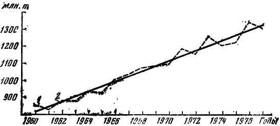 Рис. 14. Мировое производство зерна за 19601977 гг. (по данным ФАО).