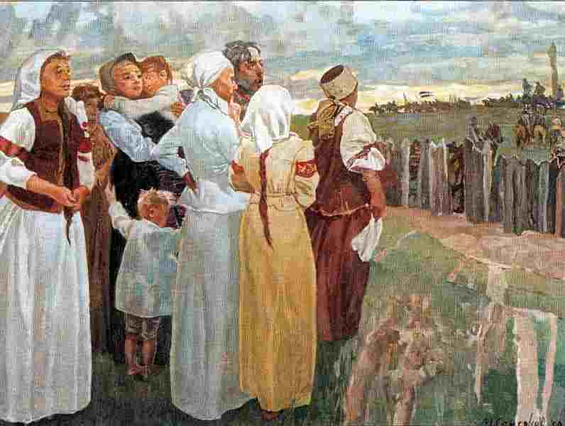 Когда ратная сила собиралась, воеводы и военачальники производили смотр: они садились в избах у окон или в шатрах и вызывали к себе один полк за другим. Дьяк со списком в руках называл по имени каждого ратника, и тот должен был выступить вперед и показаться воеводам. При смотре мало обращалось внимания на оружие и коней, требовалось только, чтобы каждый служилый человек, отмеченный в списке, явился лично на службу. Неявка без законной причины, как известно, вела к лишению поместья.