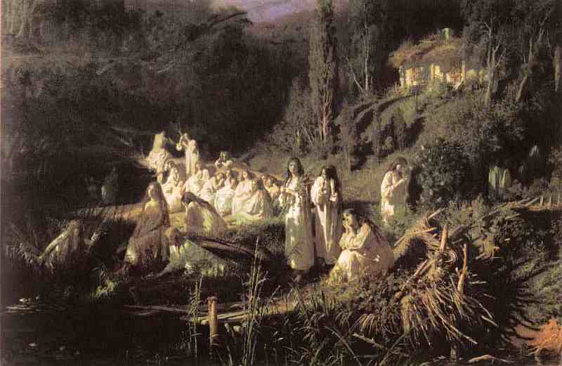 времени наступает поворот к осени. В иных деревнях совершается в ночь с 23-го на 24-е июня такой обряд: берут колесо, обвертывают его соломой, зажигают и скатывают с горы: катящееся с горы огненное колесо знаменует солнце, сходящее с прежней своей высоты. Кроме того, зажигают костры, прыгают через огонь, купаются в реке.