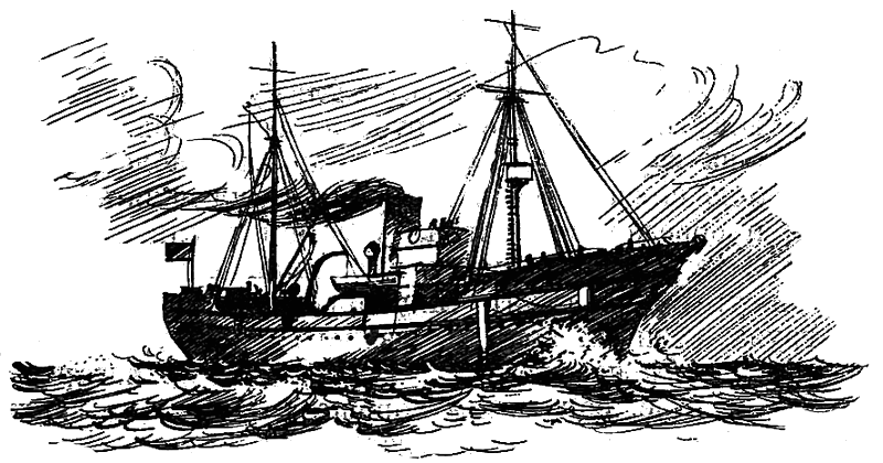 Нет. Броненосец. С пушками, совершенно целый. Смешно сделан. Такого броненоеца никогда не видывал. Ах, чортов светлячок, а не лампочка. Сейчас прочитаю медные буквы.