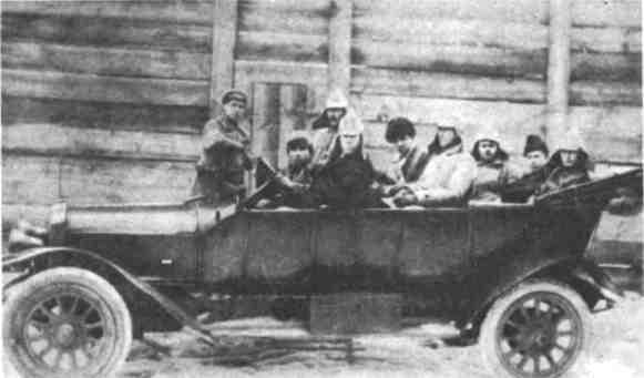Сотрудники транспортной ЧК выезжают на операцию. Четвертый слева П. И. Алексин. Фото 1921 г.