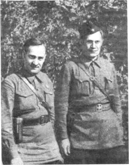 К. Ф. Фирсанов (слева) и командир Брянского городского партизанского отряда Герой Советского Союза М. И. Дука. Август 1942 г., г. Елец.