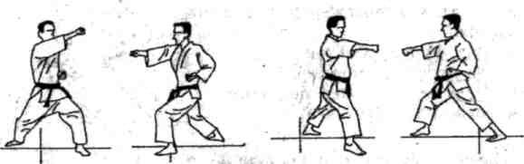 3. РэнЦуки (переменные удары) ГьякуЦуки или ОиЦуки, которые быстро наносятся 23 раза подряд с поочередной сменой рук.