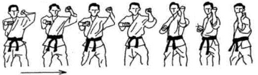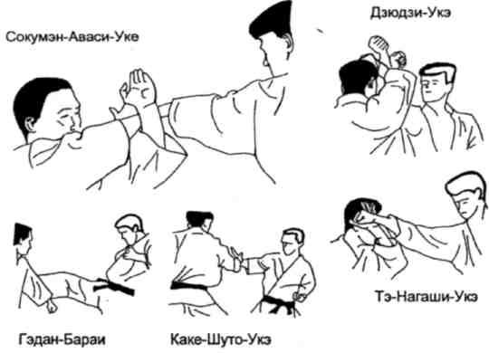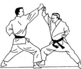 Многие нынешние ученики Каратэ проводят время в тренировках для состязаний, концентрируя внимание на приемах, с помощью которых можно победить в схватках. Они придают особое значение использованию комбинаций приемов и делают упор на развитии атак раз личными приемами, вследствие чего на тренировках занимаются такими базовыми движениями, которые укрепляют руки, кисти и стопы. Это полезно для изучения техники состязаний, однако тренировка основных приемов, свойственных Каратэ, намного важнее. Ученики Каратэ, кажется, не замечают того фактора, что защита, если применить ее с достаточной силой, может стать и атакой. Конечная цель нападающих и оборонительных приемов воспрепятствовать противнику в продолжение атаки. Этот пункт заслуживает разъяснений.