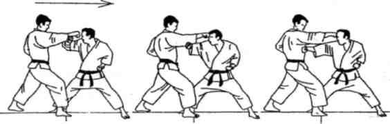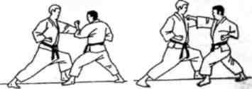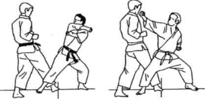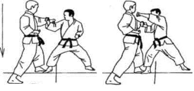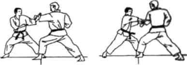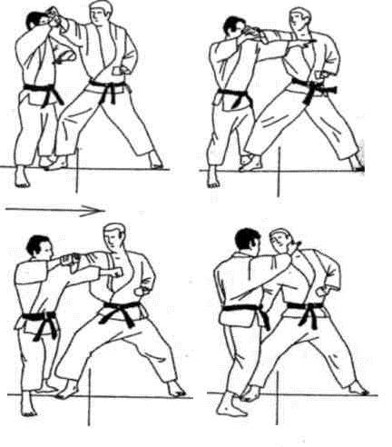 Из НаиВанСотоУкэ и Цуки блокирующей рукой (обычная дистанция) Из НаиВанСотоУкэ в ЭмпиУчи (дистанция ближе, чем обычная)