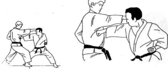 Из ТэОсаэУкэ в ГьякуЦуки (обычная дистанция) Из ОтошиУкэ в ГьякуЦуки (дистанция обычная) Из ТейсёУкэ в КакутоУчи (дистанция чуть меньше обычной) Из ТэкубиКакэУкэ в ТэйсёУчи (дистанция чуть меньше обычной)